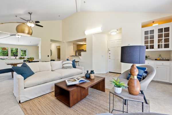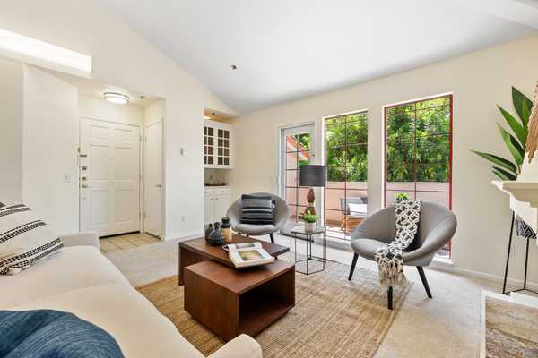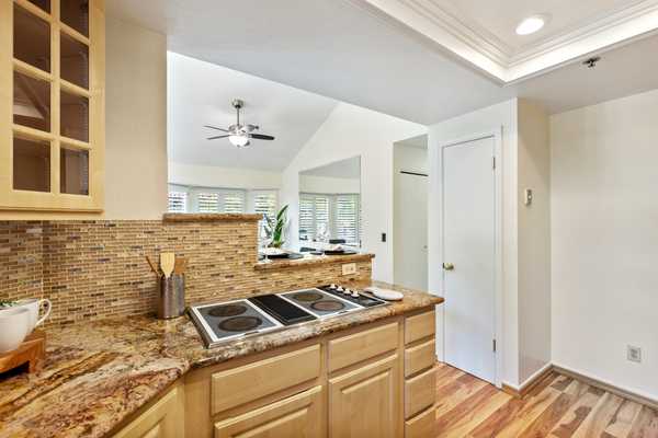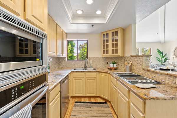 Beautifully remodeled end unit in the best location in the Cupertino Waterfall Community. This 2 Bed 2 Bath, 1154 sf residence offers conveniences of modern living with easy access to work, schools and parks. Spacious great room with cathedral ceilings, fireplace & new patio door leading to balcony overlooking the mountains. Stunning remodeled kitchen with granite countertops, tile backsplash, custom cabinets and new stainless-steel appliances. In house laundry with side by side washer and dryer. Master suite with spacious walk in closet, custom cabinetry and remodeled bath with shower. Second bedroom with 2 closets and access to 2nd bathroom. Other amenities include fresh paint, designer carpet, shutters, custom cabinetry & more. Extra wide 2 car detached tandem garage with a room for work or storage. Well-maintained community is nestled with water fountains, pool and spa. Near best amenities in the city of Cupertino; including shopping, dining and abundance of recreational facilities, such as Cupertino Library, Wilson Park, Flint Center and Quinlan Community Center. Walking distance to top rated schools and Apple buildings, minutes away from Google, Linkedin, Facebook and Tesla Headquarters and easy access to 85 & 280 freeways. Top Cupertino schools: Eaton Elementary, Lawson Middle School and Cupertino High.