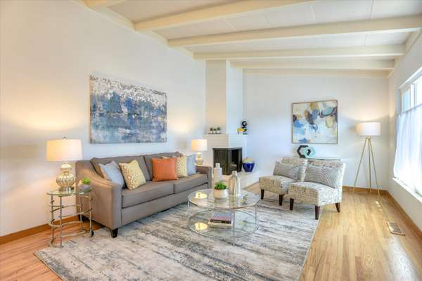 Lovely South Shoreview Mid Century Modern home on a quiet street, minutes from downtown San Mateo. Three Bedroom, Two Bath plus a spacious Family Room. Kitchen is freshly painted with newer appliances and has a convenient access point through the 2-car garage. Living room boasts a large picture window, hardwood floors, a vaulted ceiling and an inviting fireplace. Master Bedroom also has open beam ceilings and an updated en-suite bath. The family room is one of the home’s best assets with an attached large third bedroom, word burning stove and sliding doors to the newly rebuilt redwood deck. The rear yard has planter boxes ready for your garden, room play and the perfect space for summer barbeques. The front yard has a welcoming redwood gate, mature trees and great curb appeal. Convenient access to Hwy 101/92 and minutes from downtown San Mateo's restaurants and entertainment. Close to nearby Bridgepointe Shopping Center, SF Bay trail and Coyote Point and very convenient to SFO. This home is a true gem.