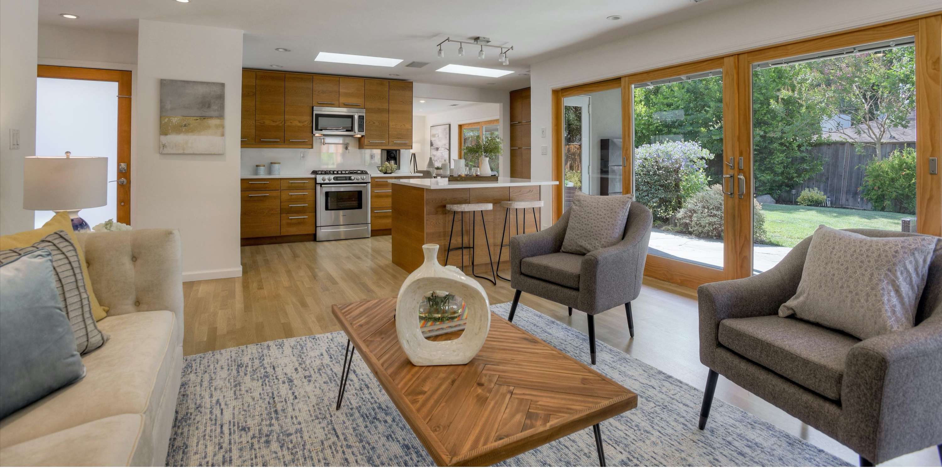 Beautiful remodeled 3 b/2 b 1,400 sf mid-century modern home on a 6,200 sf parcel in the picturesque Woodside Plaza neighborhood. Open floor plan w/freshly painted interior/exterior, bright refinished hardwood floors & brand new stone fireplace. Sliding door & floor to ceiling windows illuminate living rm w/ natural light. Kitchen features quartz countertops & custom cabinets, next to family rm w/ more backyard access & storage closet. Baths feature tile stall showers w/custom glass enclosure & tile flooring. Roomy bedrooms w/built-in closets & master bed equipped w/ceiling fan. Pro landscaped grounds w/native Cal foliage, perimeter plants & hedge, plus mature fruit trees in backyard. Pergola-shaded 2-car driveway leads to roomy storage unit. Walking distance to highly desirable, top schools - Ford, Kennedy & Woodside High. Conveniently located to Hwy 84, 280, shopping, dining, shops, downtown & Stulsaft Park. The best commuter location on the Peninsula in the heart of Redwood City!