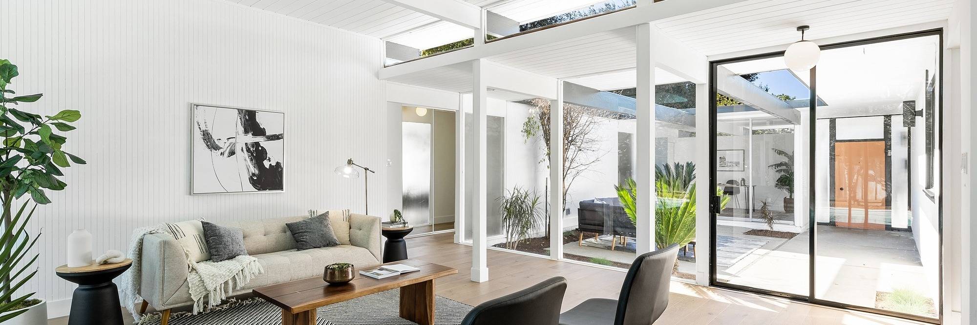 The homes are highly desirable and the architecture is a mix of low-gable and flat-roofed models, and a few A-frames, virtually all with atriums. While keeping true to the original Eichler design, homes in the neighborhood free to be updated tastefully with a modern touch. There are delicatessens, restaurants, and shops at a nearby strip shopping center as Rancho Verde is a very walkable neighborhood.